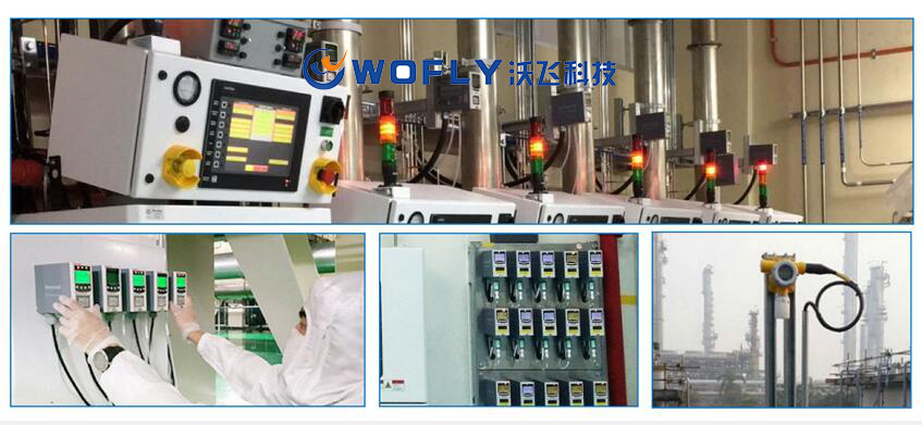 以可燃氣體檢測器為例,當氣體探測器檢測到空氣中的可燃氣體時,將氣體濃度的大小轉化為相應的4-20mA電流信號,由連接電纜傳送至深圳沃飛科技有限公司的監(jiān)測報警控制系統(tǒng),監(jiān)測報警控制器再將電信號轉化為數(shù)字信號,在液晶顯示器上顯示出氣體的濃度值,當檢測值大于報警設定值時,便由蜂鳴器或警示燈發(fā)出報警信號,提示工作人員引起注意,或啟動連鎖排風系統(tǒng)。