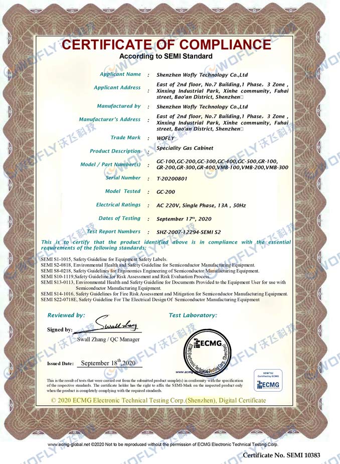 特氣柜擁有SEMI S2認(rèn)證的必要性!
