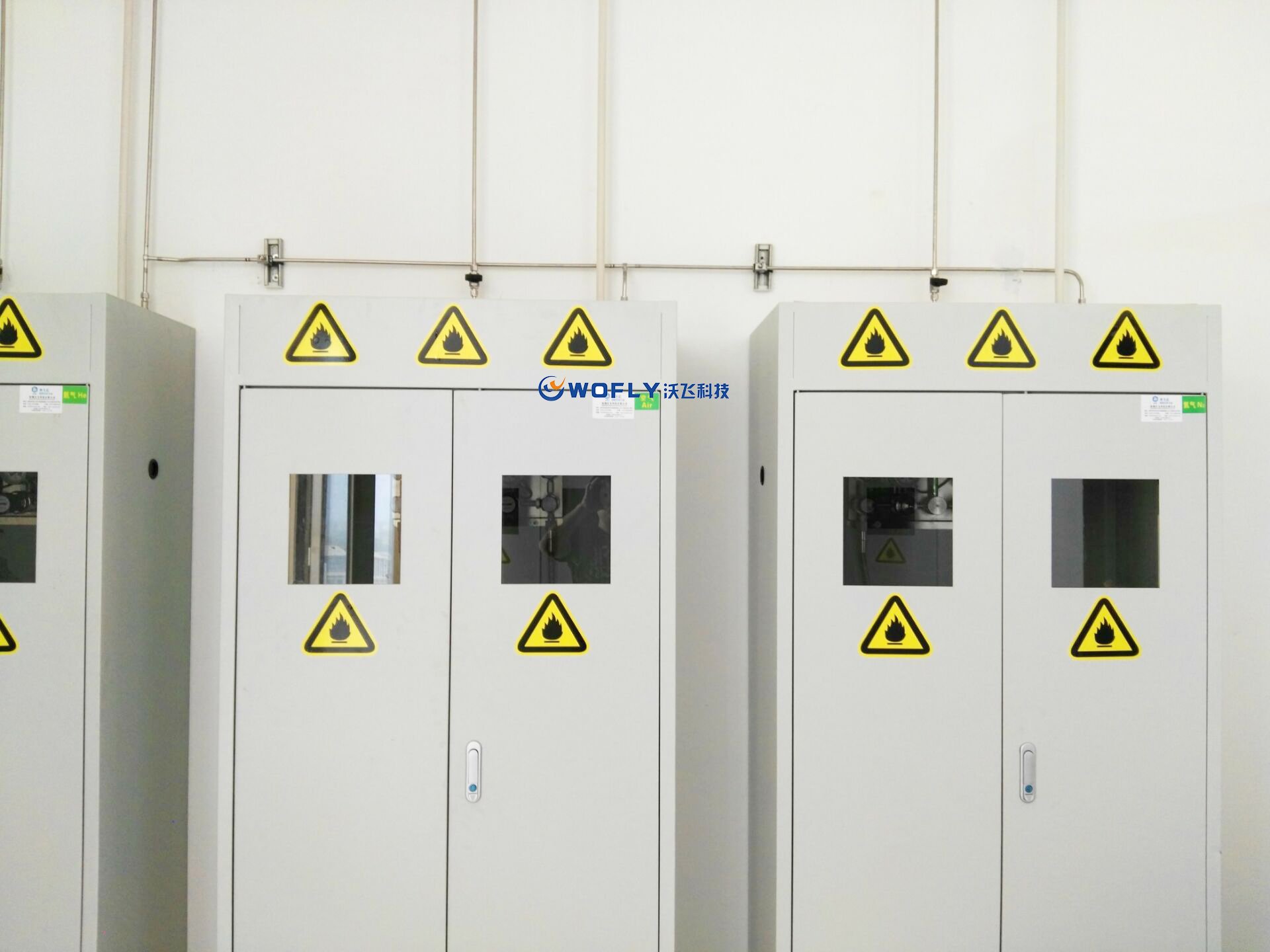同時(shí),按照國(guó)標(biāo)要求,將所用全部氣體存放于儲(chǔ)氣間,并實(shí)現(xiàn)集中輸送,組成實(shí)驗(yàn)室集中供氣系統(tǒng)。實(shí)現(xiàn)人氣分離,保障分析測(cè)試人員在實(shí)驗(yàn)中免受有毒有害氣體的侵害。