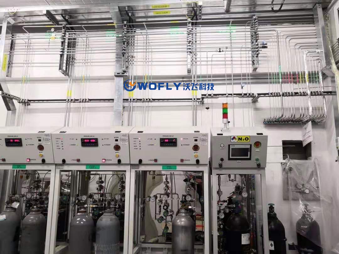 沃飛WOFLY全自動(dòng)特氣柜(GC)通過PLC面板,配合觸摸屏進(jìn)行系統(tǒng)顯示和設(shè)定,從而實(shí)現(xiàn)設(shè)備安全有效的運(yùn)行。其內(nèi)部PLC程式設(shè)計(jì)的安全聯(lián)鎖功能、高純閥件的合理選擇和布局,既滿足了CVD(化學(xué)氣相沉積)在生產(chǎn)過程中對(duì)氣體原材料的高純度和連續(xù)穩(wěn)定供給的要求,也確保了正常生產(chǎn)和員工人身安全。