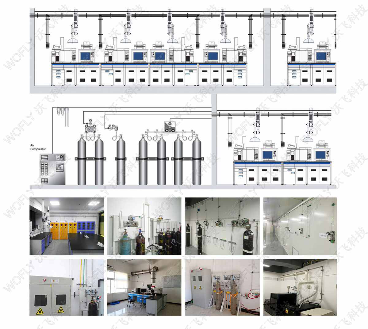實驗室集中供氣系統(tǒng)主要由:氣源、切換裝置、調(diào)壓裝置、終端用氣點和氣體泄漏監(jiān)測報警裝置,能將氣源(一般為氣體鋼瓶)中氣體經(jīng)過切換裝置并調(diào)壓供氣輸送到各個分散的終端用氣點。